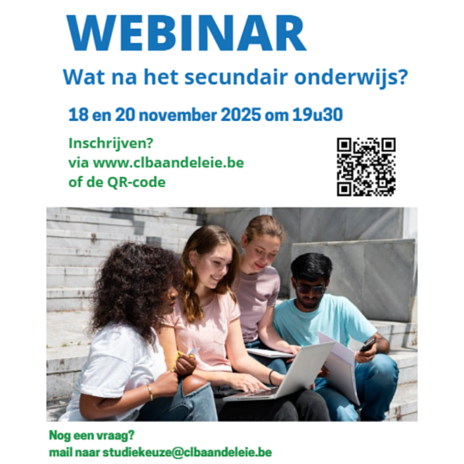 Daarnaast kan je natuurlijk steeds bij het CLB terecht met jouw persoonlijke vraag rond jouw onderwijsloopbaan en studiekeuze.